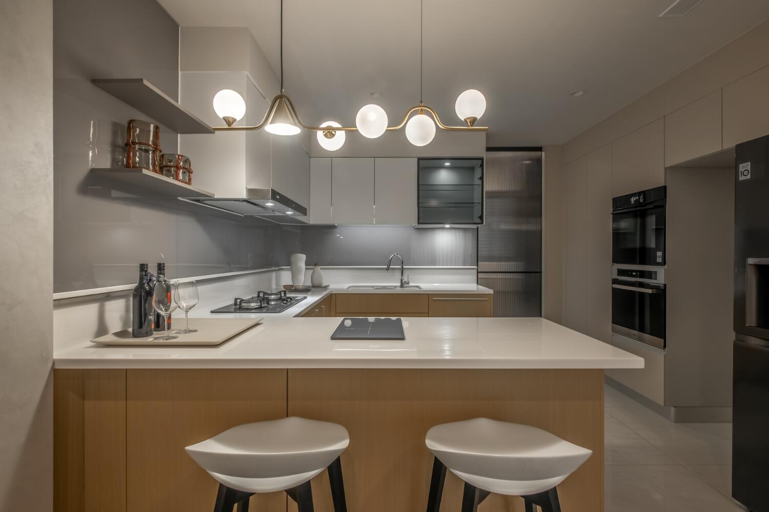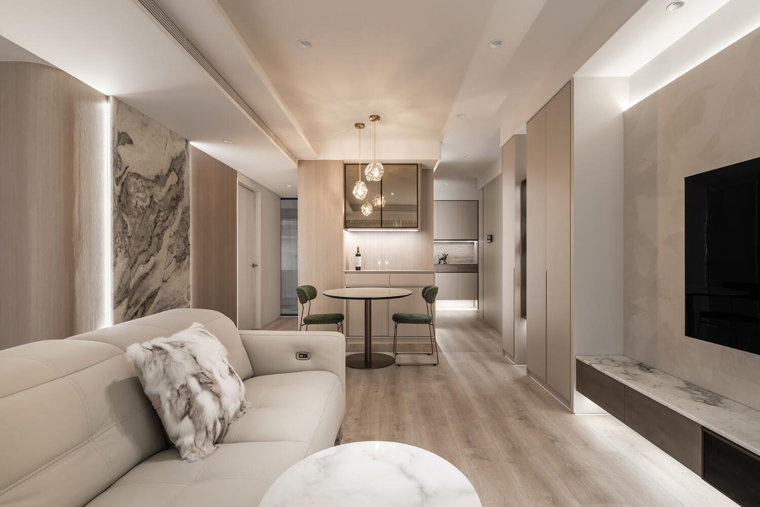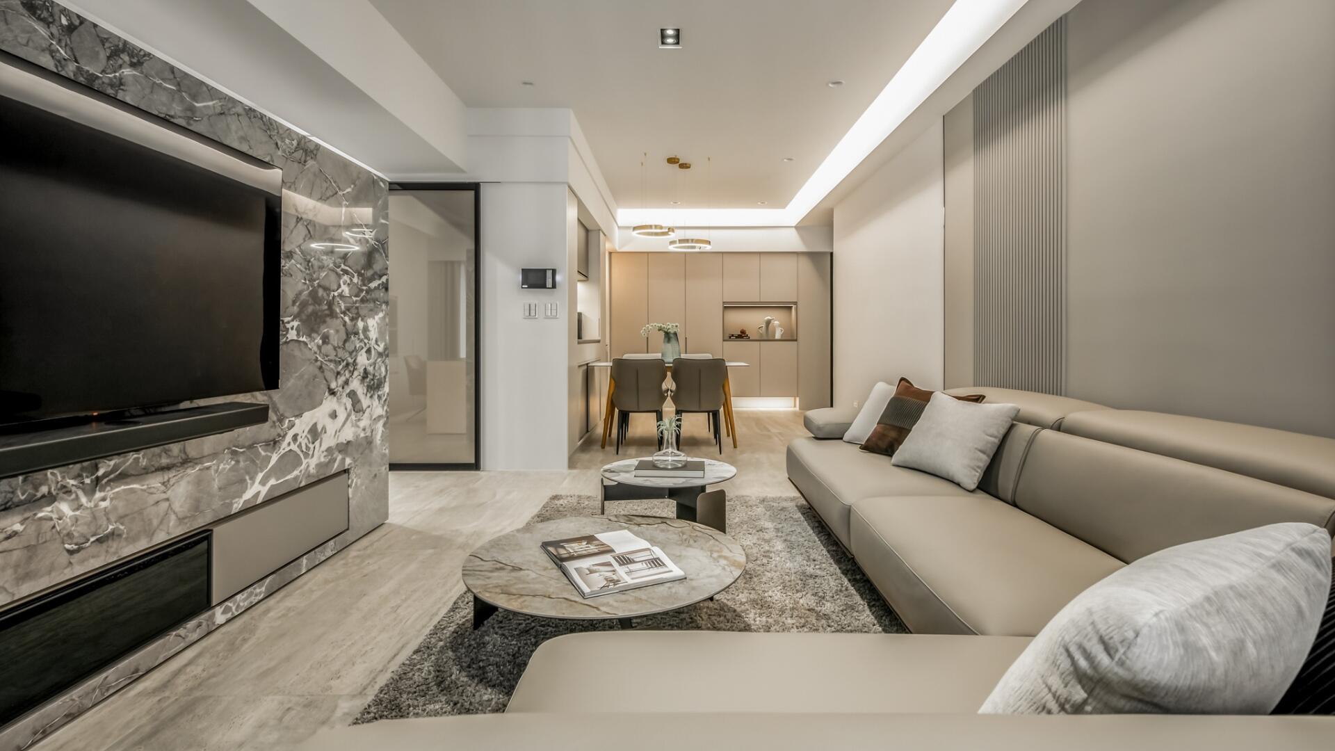 奶灰白色系與大理石的結合,能營造一股低調但不失奢華的裝潢風格,將溫暖的奶灰白色調與冷峻的大理石質感相互融合,營造出一種和諧而富有層次感的空間