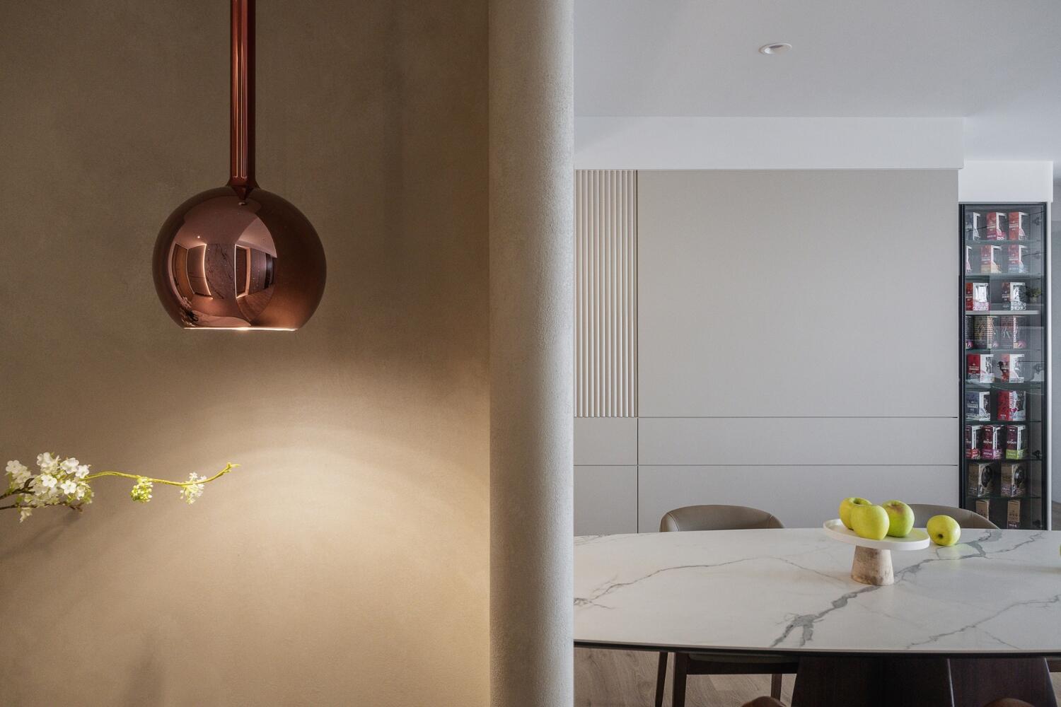 以現代簡約空間為基底,用圓潤線條及奶茶色系,為溫柔浪漫的女主人打造放鬆身心的住宅。透過室內設計師的巧思,讓家不僅是給身體休息的歸所,更是能安頓心靈的溫柔港灣。