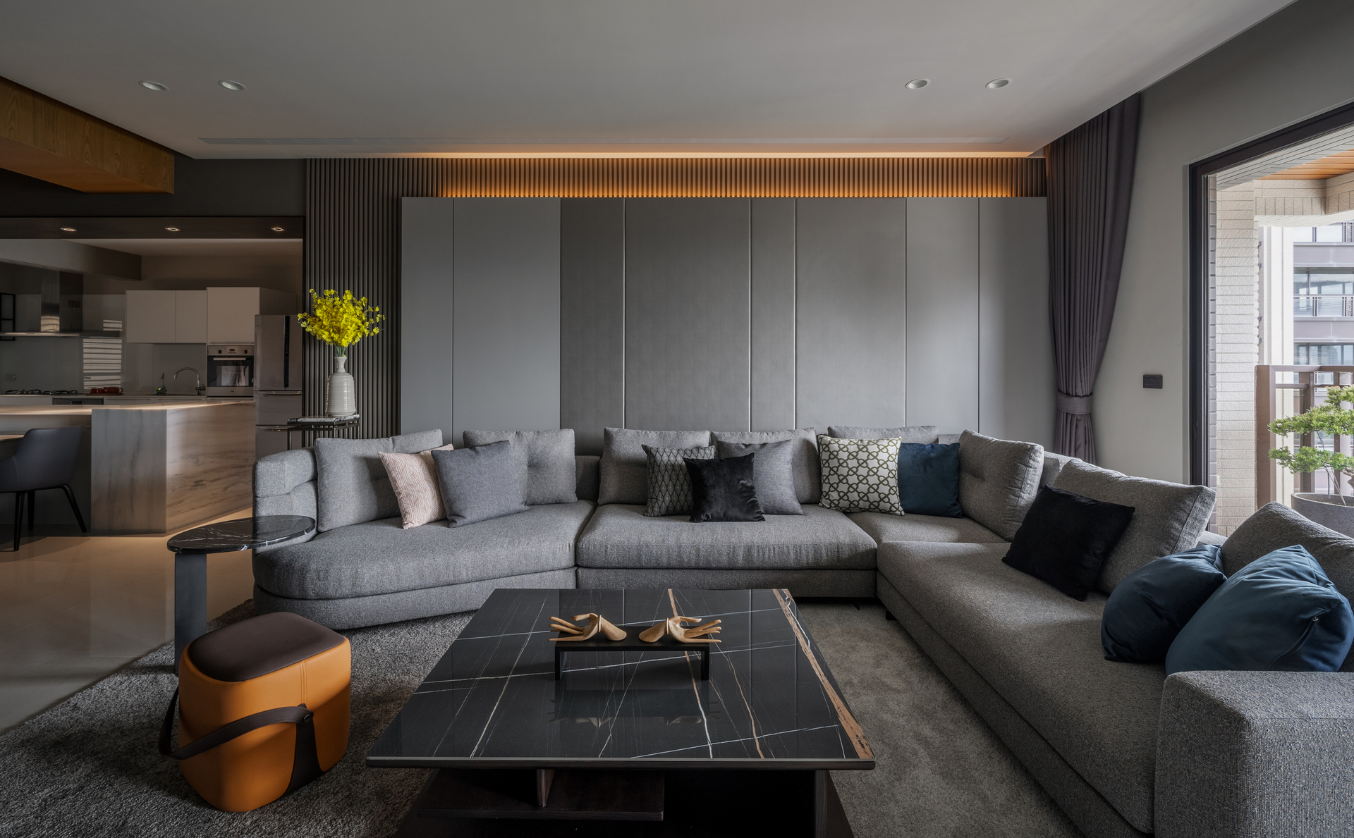 這麼多的設計美學與機能性⿑備,讓這處豪宅客廳設計,完全因應屋主的品味⽽⽣。